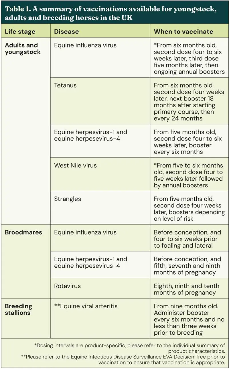 Equine Infectious Disease Surveillance has published guidelines and a decision tree to guide best practice in vaccination (Equine Infectious Disease Surveillance, 2025).