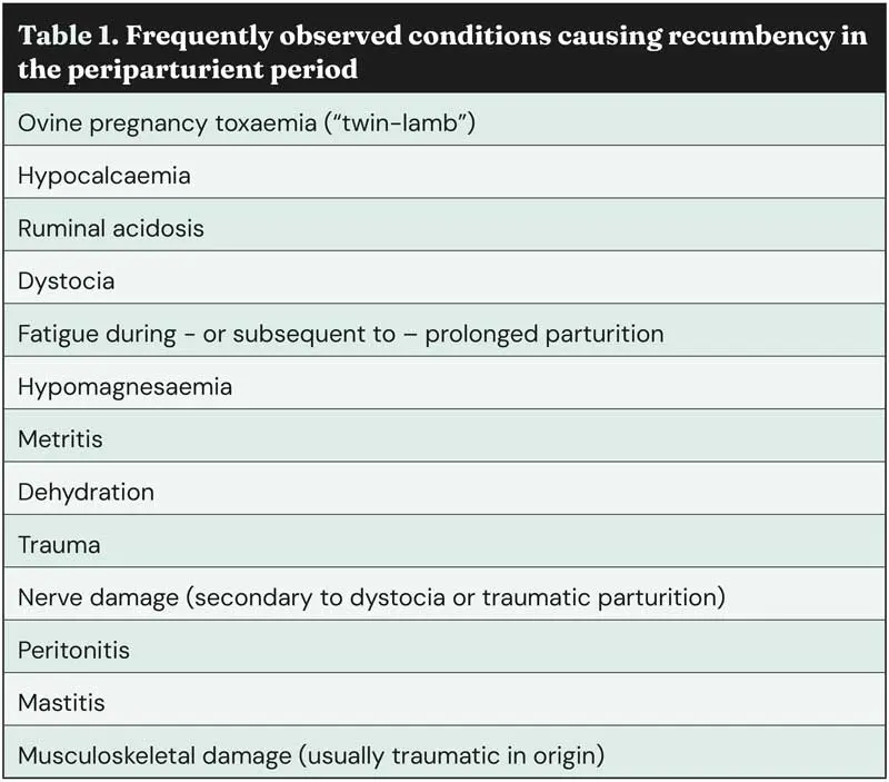 Table 1 shows a list of the most frequently observed differential diagnoses for recumbent ewes in the periparturient period.