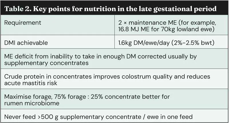 As such, it is useful to re-visit some basics of ovine nutritional requirements in the late gestational period (Table 2).