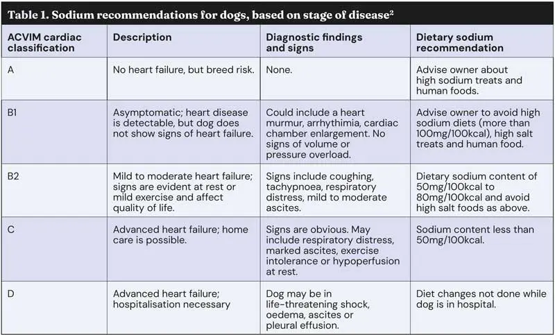 Defined nutritional recommendations have been made for MMVD dogs based on the ACVIM classification (Table 1)2.
