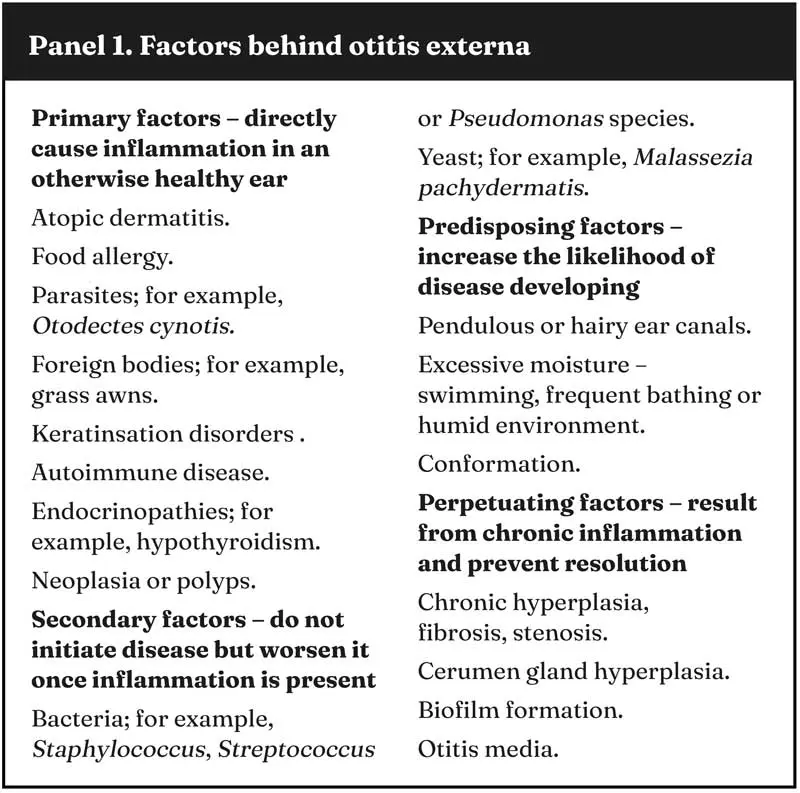 Otitis externa remains one of the most frequent reasons for veterinary consultation in small animal practice, with a reported prevalence in dogs of 7.3% in primary care1.