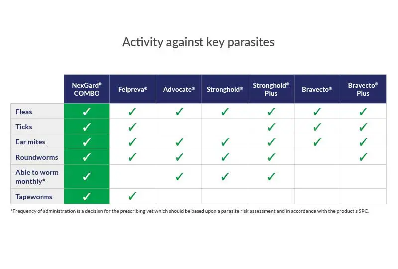 So, once you know a cat needs monthly flea, tick and worm control, get protective with NexGard® COMBO, the parasiticide that works for your patients, your clients, and you.