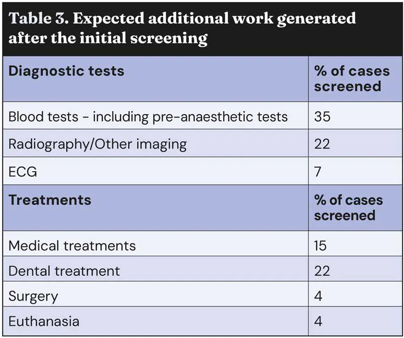 The full screen is done at no cost to the owner, but practice revenue is expected to offset this from additional diagnostic investigations (for example, blood tests, imaging) or medical/surgical interventions.