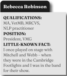 And then there are practical tools, such as the “two-minute rule” for managing tasks, and my extremely unattractive, but essential, paper organiser. Without it, I’d be lost. It keeps my brain clear, so I can balance my day job with Vet Dynamics, the VMG presidency, being a mum, playing in two bands, keeping active and supporting my family. It’s not perfect – but it works.