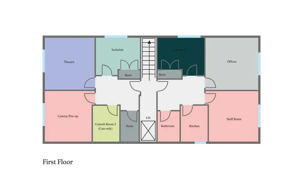 “We also have digital x-ray, dental x-ray, two operating theatres and a dental suite. The upstairs includes dedicated cat facilities, which are essential for quality care: we’ve got cat dental, we’ve got a cat theatre, we’ve got isolation units, we’ve a cat consult room, we’ve got a full lab, and then we’ve got a large ancillary space for our staff.”