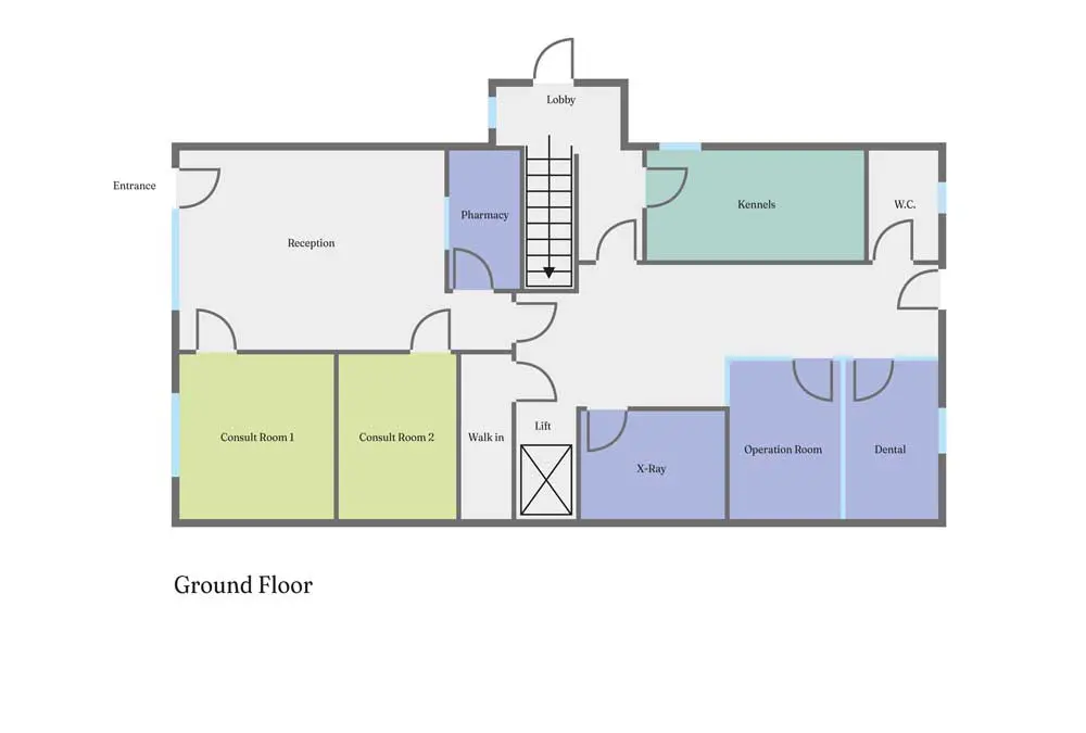 The Bridgend facility is now a full-fledged veterinary hospital, designed to maximise both clinical space and staff amenities. “We’ve got two consult rooms downstairs, reception and pharmacy,” Vienna added.